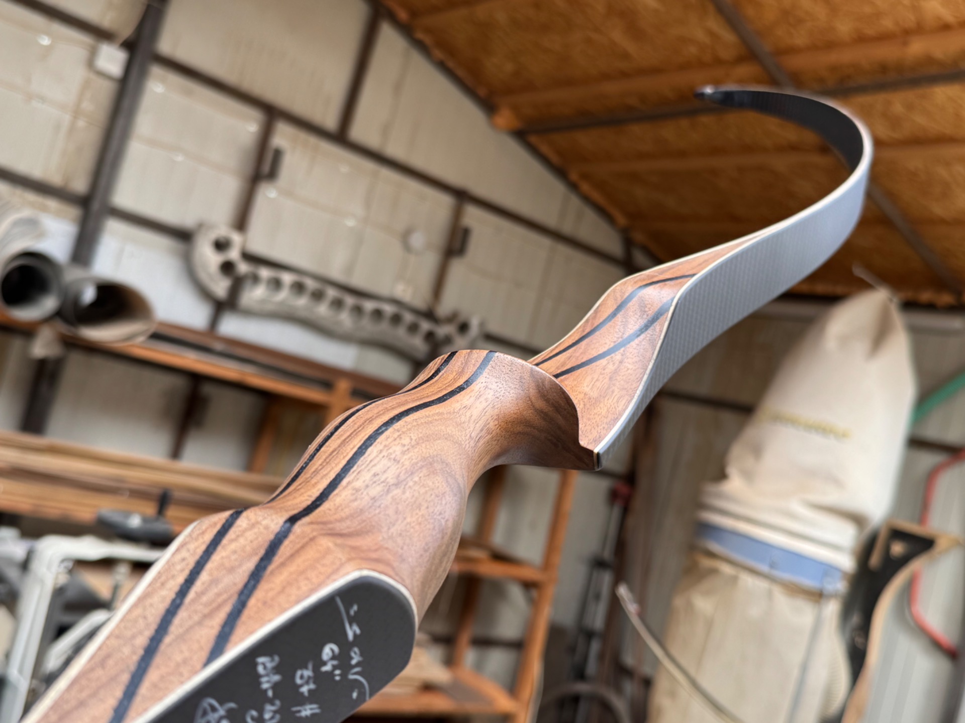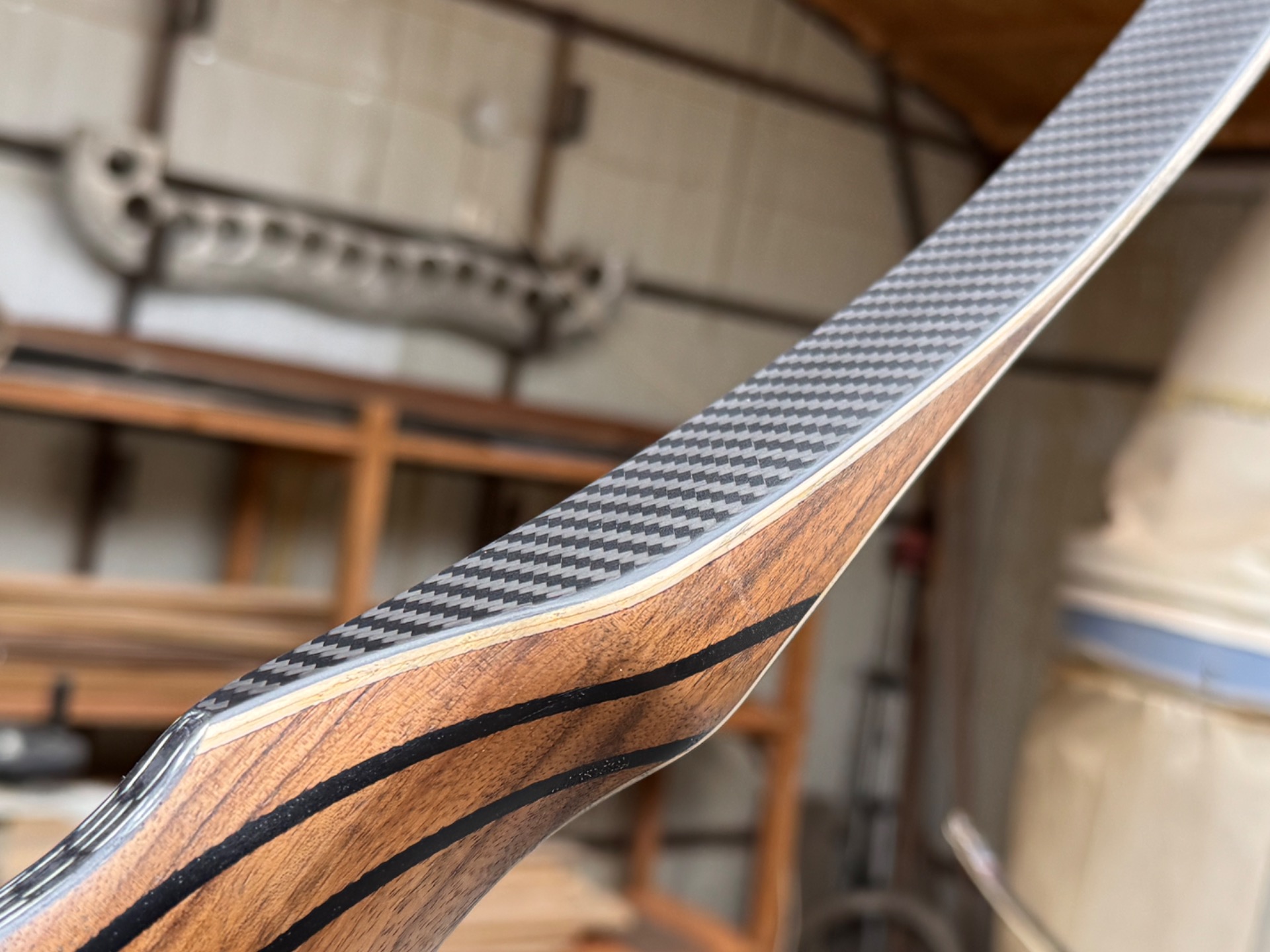 Probably the most reflex recurve bow you've ever seen, absolutely fabulous loading and transmission, 70% of the total energy is loaded in the first 6-7" and the rest up to 28" is divided approximately equally over the rest of the draw up to 28-30 or 32".